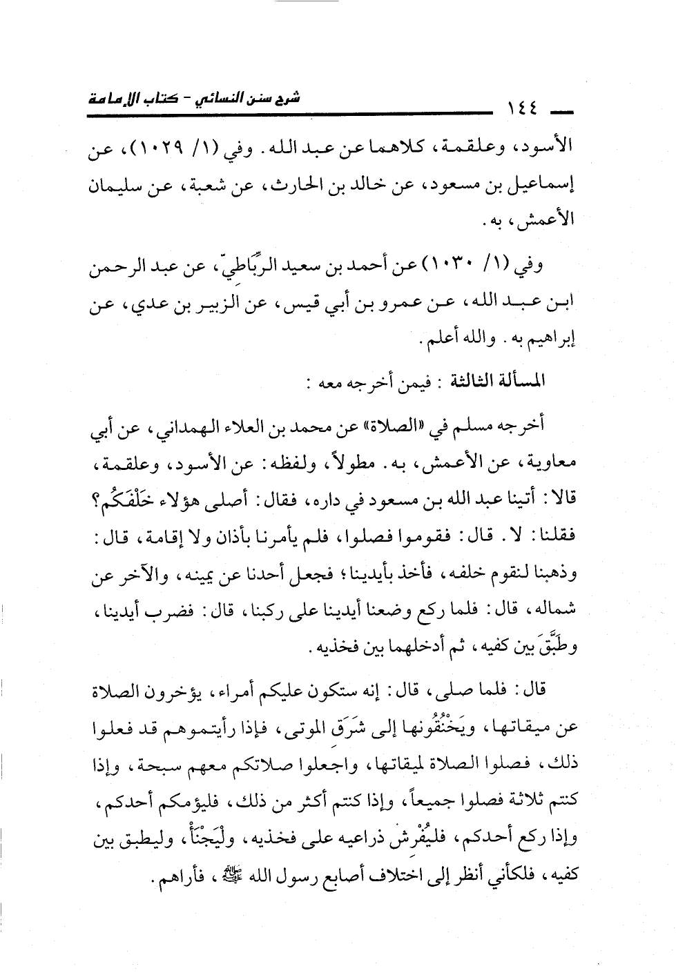 الأسود، وعلقمة، كلاهما عن عبد الله. وفي (1/ 1029)، عن إسماعيل بن مسعود، عن خالد بن الحارث، عن شعبة، عن سليمان الأعمش، به.