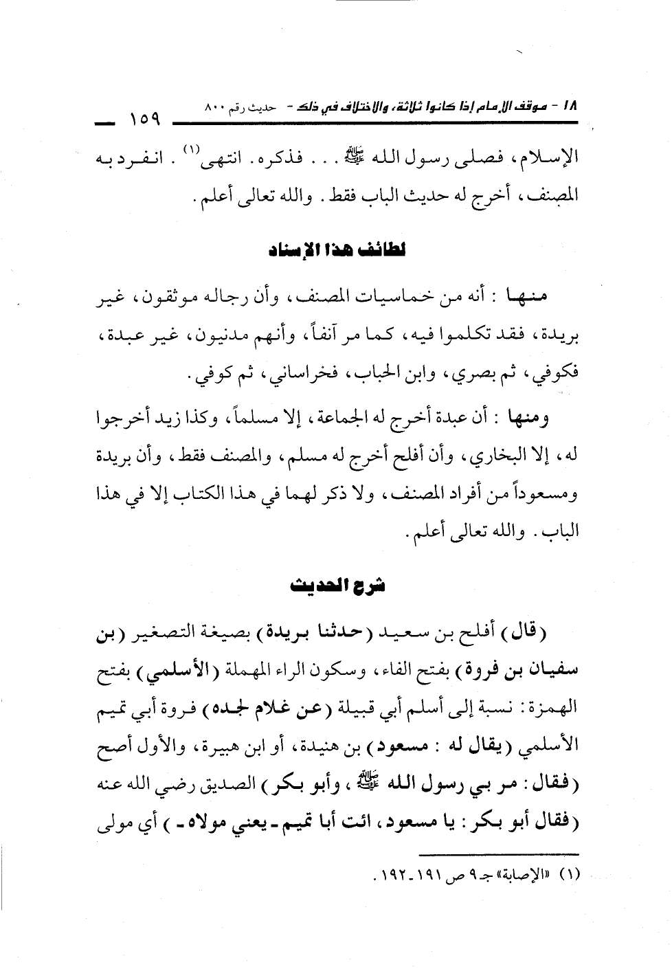 ومنها: أن عبدة أخرج له الجماعة، إلا مسلماً، وكذا زيد أخرجوا له، إلا البخاري، وأن أفلح أخرج له مسلم، والمصنف فقط، وأن بريدة ومسعوداً من أفراد المصنف، ولا ذكر لهما في هذا الكتاب إلا في هذا الباب. والله تعالى أعلم.