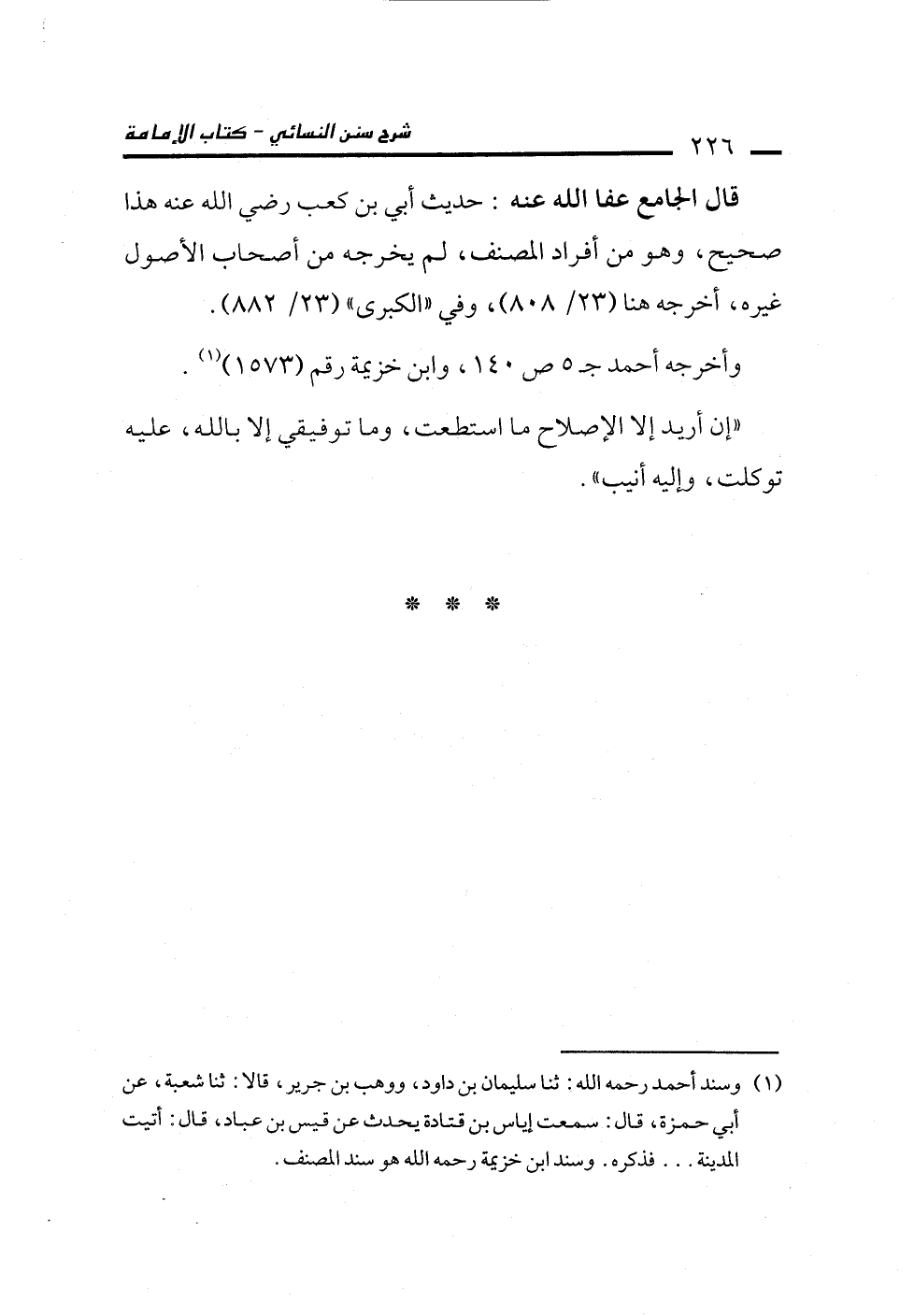 قال الجامع عفا الله عنه: حديث أبي بن كعب رضي الله عنه هذا صحيح، وهو من أفراد المصنف، لم يخرجه من أصحاب الأصول غيره، أخرجه هنا (23/ 808)، وفي "الكبرى" (23/ 882).