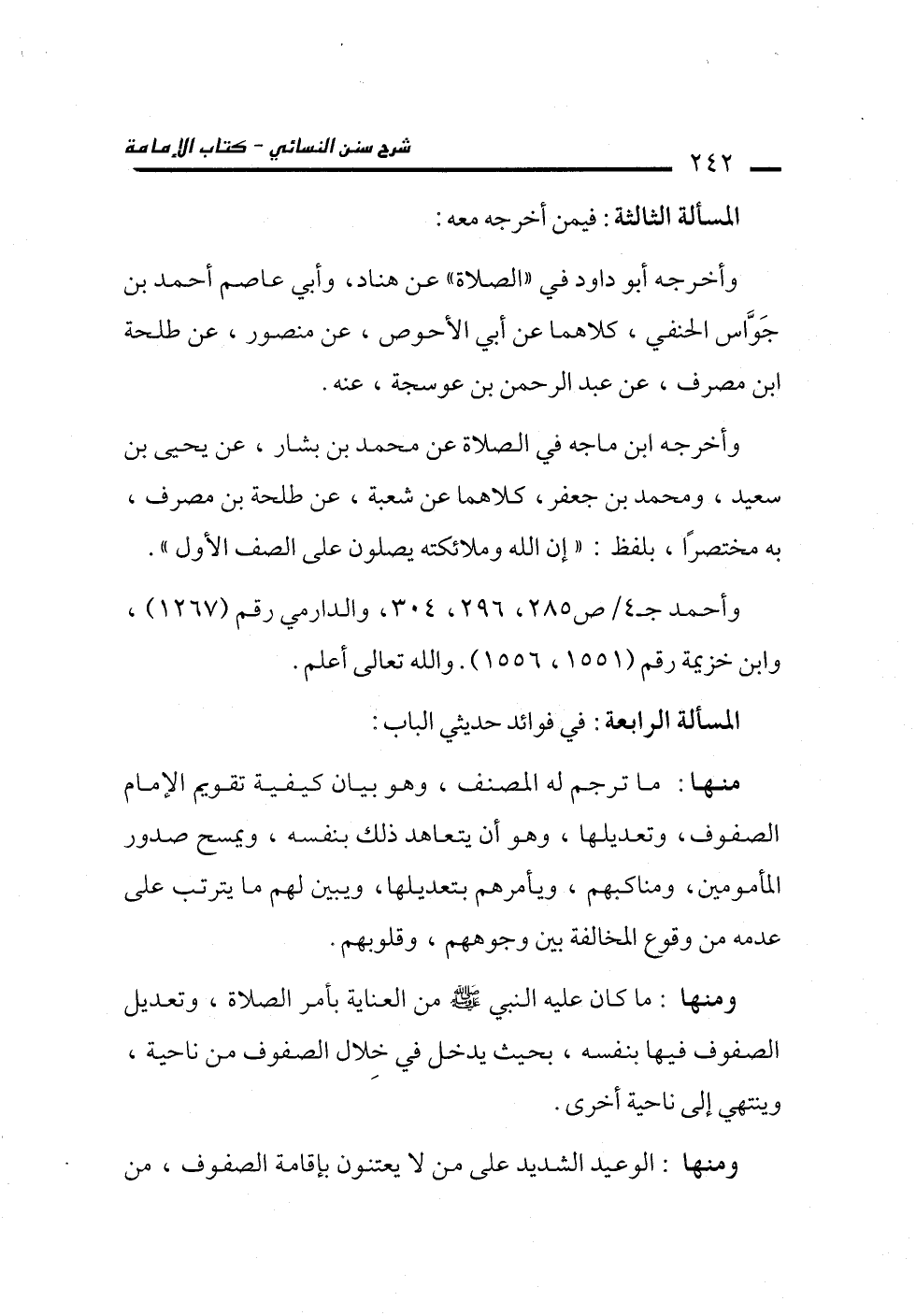 وأخرجه أبو داود في "الصلاة" عن هناد، وأبي عاصم أحمد بن جَوَّاس الحنفي، كلاهما عن أبي الأحوص، عن منصور، عن طلحة ابن مصرف، عن عبد الرحمن بن عوسجة، عنه.