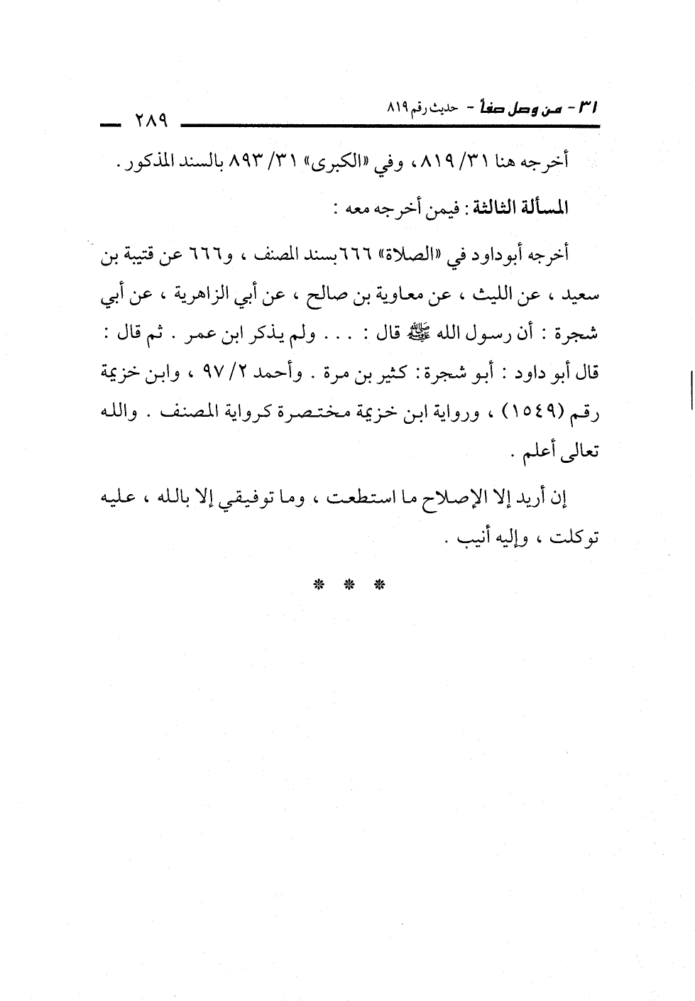 أخرجه أبو داود في "الصلاة" 666 بسند المصنف، و666 عن قتيبة بن سعيد، عن الليث، عن معاوية بن صالح، عن أبي الزاهرية، عن أبي شجرة: أن رسول الله -صلى الله عليه وسلم- قال: ... ولم يذكر ابن عمر. ثم قال: قال أبو داود: أبو شجرة: كثير بن مرة. وأحمد 2/ 97، وابن خزيمة رقم (1549)، ورواية ابن خزيمة مختصرة كرواية المصنف. والله تعالى أعلم.