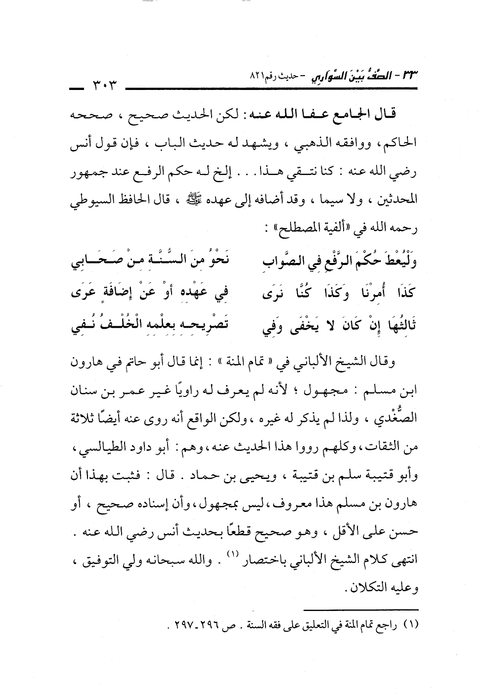 (¬1) راجع تمام المنة في التعليق على فقه السنة. ص 296 - 297.