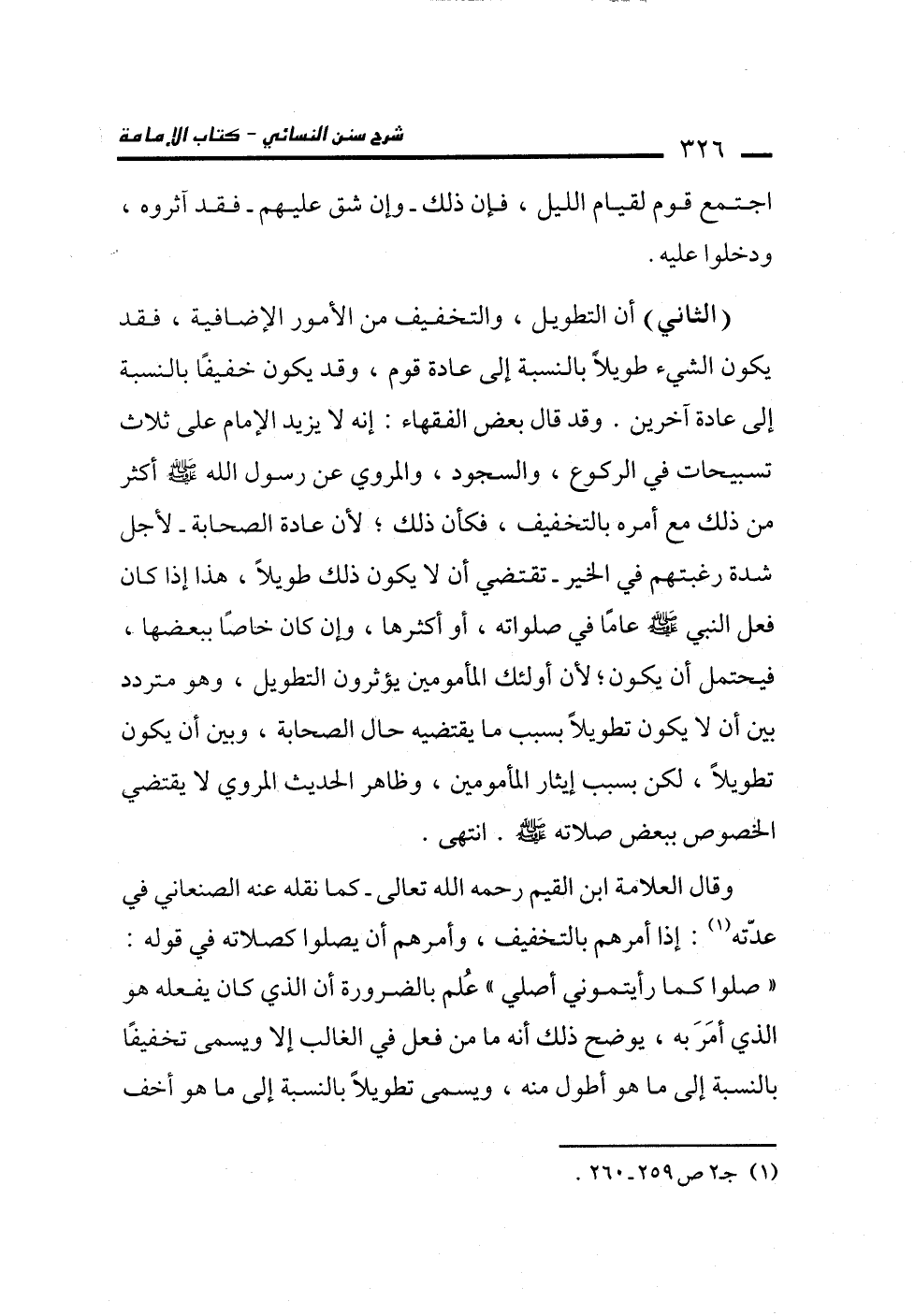 وقال العلامة ابن القيم رحمه الله تعالى -كما نقله عنه الصنعاني في عدّته (¬1): إذا أمرهم بالتخفيف، وأمرهم أن يصلوا كصلاته في قوله: "صلوا كما رأيتموني أصلي" عُلم بالضرورة أن الذي كان يفعله هو الذي أمَرَ به، يوضح ذلك أنه ما من فعل في الغالب إلا ويسمى تخفيفًا بالنسبة إلى ما هو أطول منه، ويسمى تطويلاً بالنسبة إلى ما هو أخف