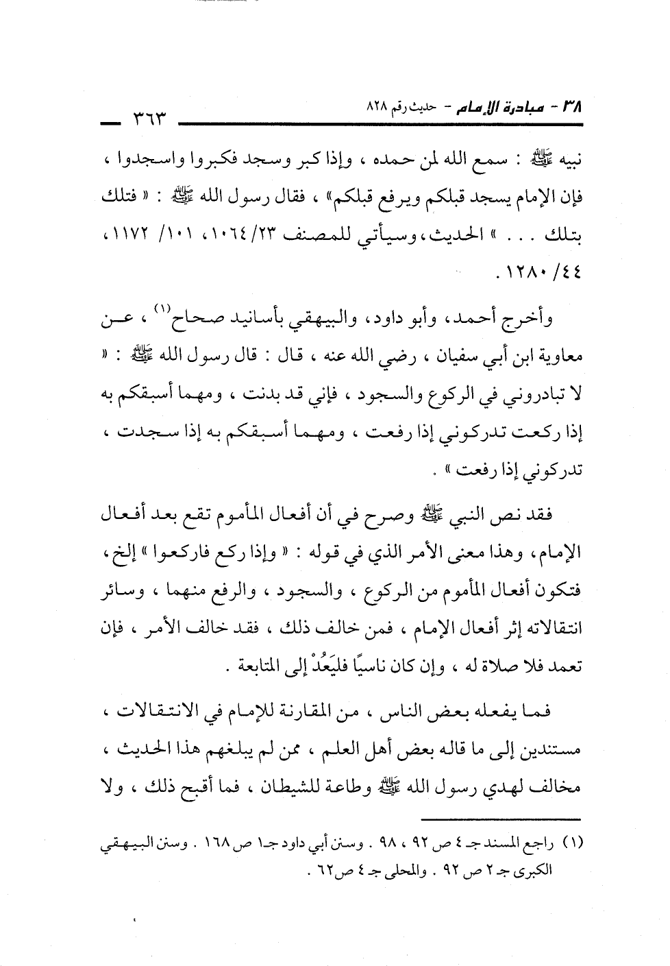 (¬1) راجع المسند جـ 4 ص 92، 98. وسنن أبي داود جـ 1 ص 168. وسنن البيهقي الكبرى جـ 2 ص 92. والمحلى جـ 4 ص 62.