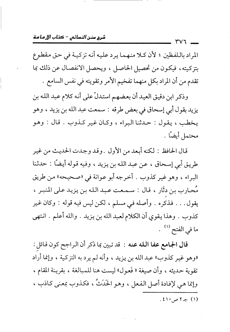 وذكر ابن دقيق العيد أن بعضهم استدل على أنه كلام عبد الله بن يزيد بقول أبي إسحاق في بعض طرقه: سمعت عبد الله بن يزيد، وهو يخطب، يقول: حدثنا البراء، وكان غير كذوب. قال: وهو محتمل أيضًا.