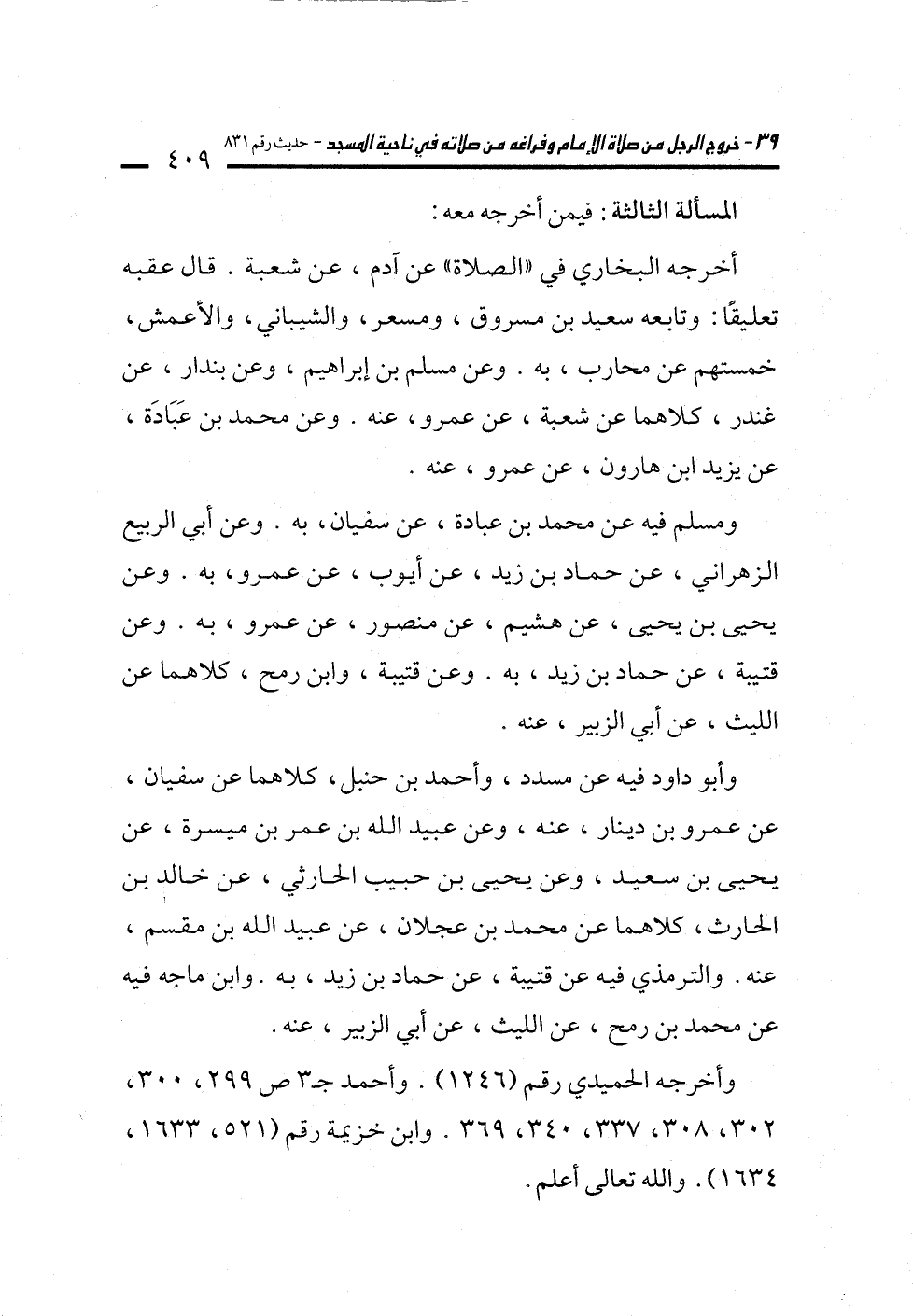 وأخرجه الحميدي رقم (1246). وأحمد جـ 3 ص 299، 300، 302، 308، 337، 340، 369 وابن خزيمة رقم (521، 1633، 1634). والله تعالى أعلم.