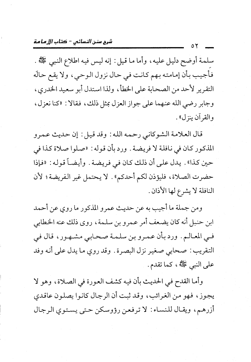 ومن جملة ما أجيب به عن حديث عمرو المذكور ما روي عن أحمد ابن حنبل أنه كان يضعف أمر عمرو بن سلمة، روى ذلك عنه الخطابي في المعالم. ورد بأن عمرو بن سلمة صحابي مشهور، قال في التقريب: صحابي صغير نزل البصرة. وقد روي ما يدل على أنه وفد على النبي -صلى الله عليه وسلم-، كما تقدم.