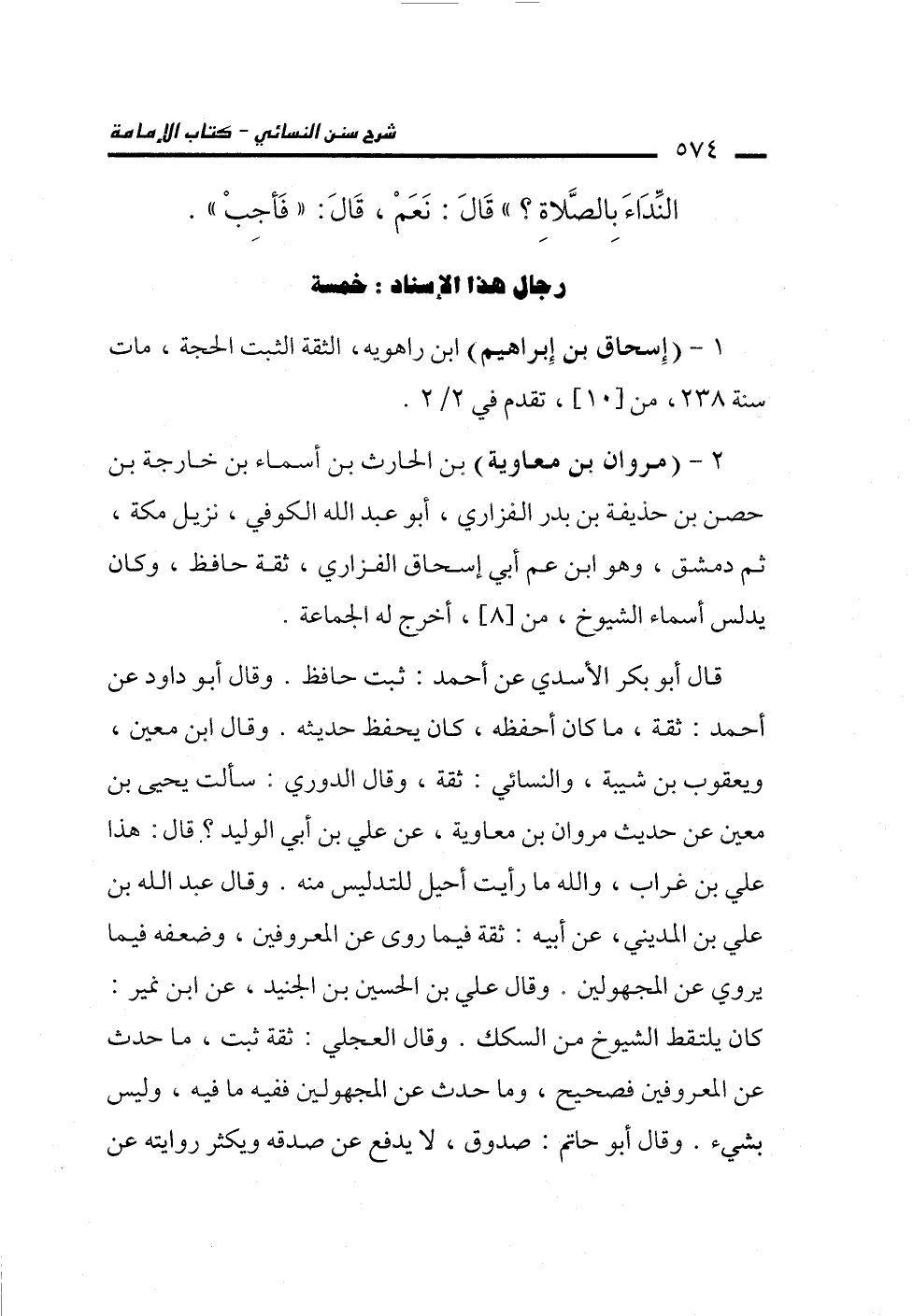 2 - (مروان بن معاوية) بن الحارث بن أسماء بن خارجة بن حصن بن حذيفة بن بدر الفزاري، أبو عبد الله الكوفي، نزيل مكة، ثم دمشق، وهو ابن عم أبي إسحاق الفرازي، ثقة حافظ، وكان يدلس أسماء الشيوخ، من [8]، أخرج له الجماعة.