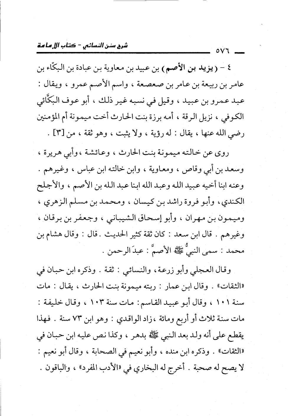 4 - (يزيد بن الأصم) بن عبيد بن معاوية بن عبادة بن البكّاء بن عامر بن ربيعة بن عامر بن صعصعة، واسم الأصم عمرو، ويقال: عبد عمرو بن عبيد، وقيل في نسبه غير ذلك، أبو عوف البكَّائي الكوفي، نزيل الرقة، أمه برزة بنت الحارث أخت ميمونة أم المؤمنين رضي الله عنها، يقال: له رؤية، ولا يثبت، وهو ثقة، من [3].