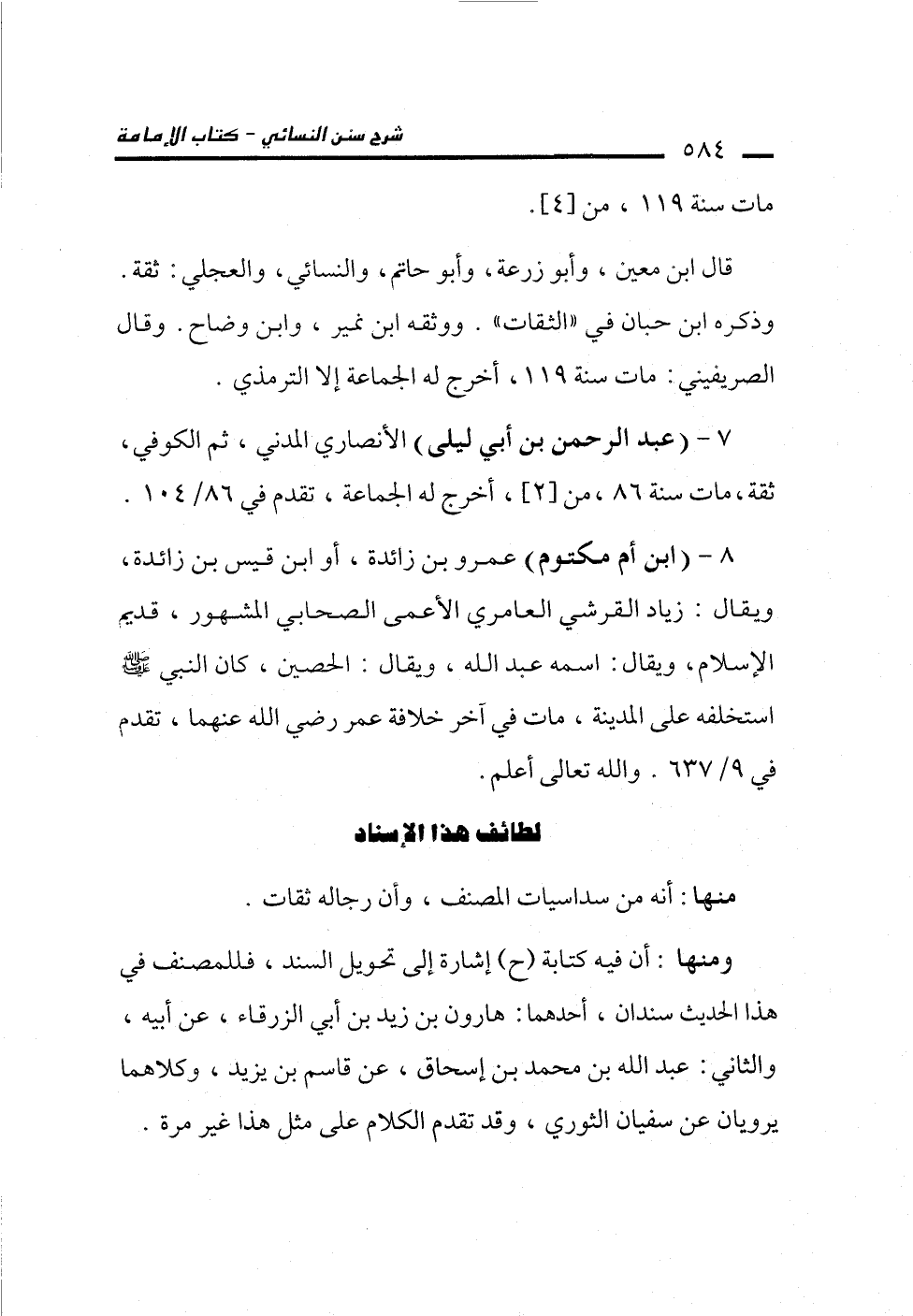 8 - (ابن أم مكتوم) عمرو بن زائدة، أو ابن قيس بن زائدة، ويقال: زياد القرشي العامري الأعمى الصحابي المشهور، قدير الإِسلام، ويقال: اسمه عبد الله، ويقال: الحصين، كان النبي -صلى الله عليه وسلم- استخلفه على المدينة، مات في آخر خلافة عمر رضي الله عنهما، تقدم في 9/ 637. والله تعالى أعلم.