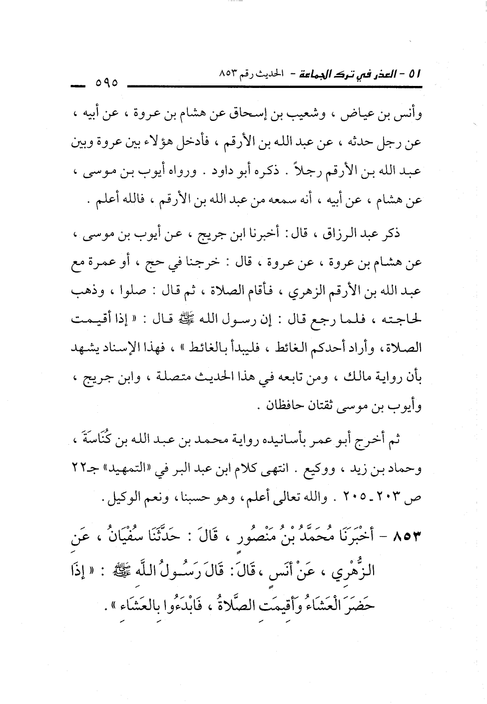 ثم أخرج أبو عمر بأسانيده رواية محمد بن عبد الله بن كُنَاسَةَ، وحماد بن زيد، ووكيع. انتهى كلام ابن عبد البر في "التمهيد" جـ 22 ص 203 - 205. والله تعالى أعلم، وهو حسبنا، ونعم الوكيل.