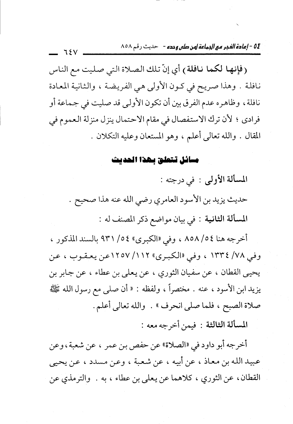 مسائل تتعلق بهذا الحديث