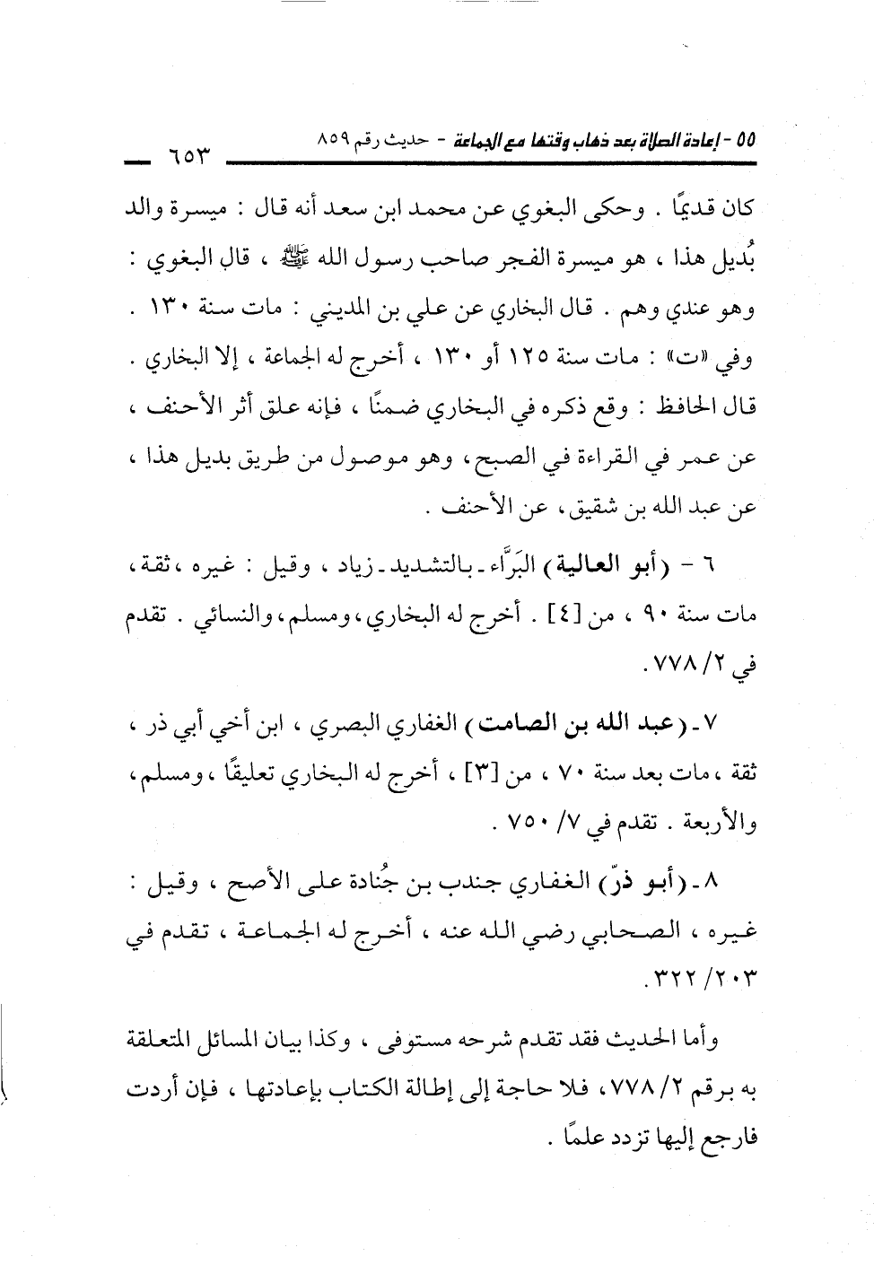 وأما الحديث فقد تقدم شرحه مستوفى، وكذا بيان المسائل المتعلقة به برقم 2/ 778، فلا حاجة إلى إطالة الكتاب بإعادتها، فإن أردت فارجع إليها تزدد علمًا.