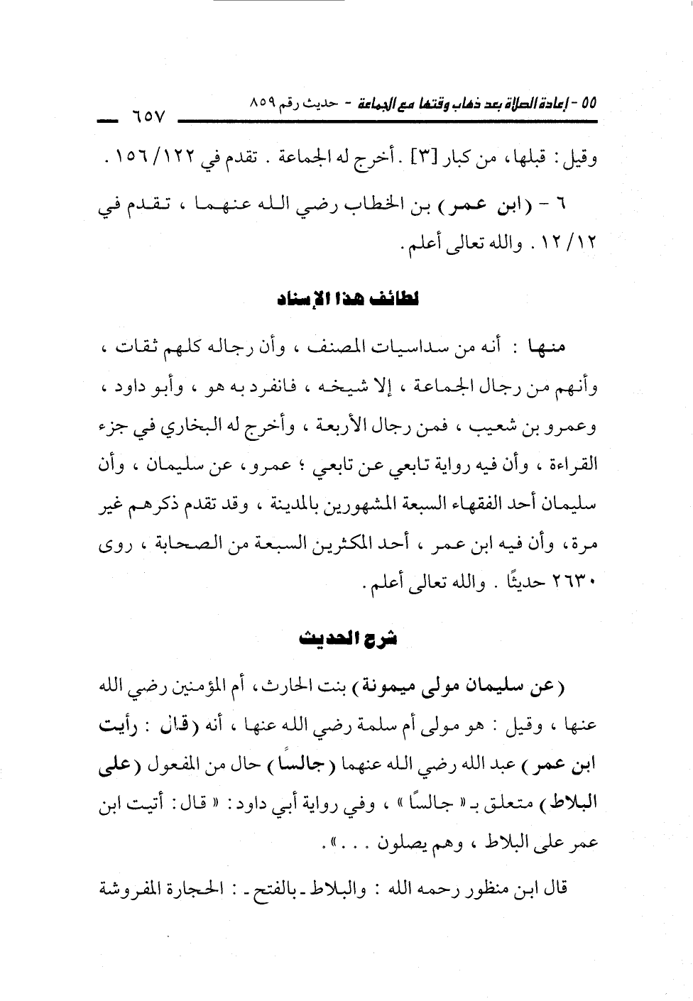 منها: أنه من سداسيات المصنف، وأن رجاله كلهم ثقات، وأنهم من رجال الجماعة، إلا شيخه، فانفرد له هو، وأبو داود، وعمرو بن شعيب، فمن رجال الأربعة، وأخرج له البخاري في جزء القراءة، وأن فيه رواية تابعي عن تابعي، عمرو، عن سليمان، وأن سليمان أحد الفقهاء السبعة المشهورين بالمدينة، وقد تقدم ذكرهم غير مرة، وأن فيه ابن عمر، أحد المكثرين السبعة من الصحابة، روى 2630 حديثًا. والله تعالى أعلم.