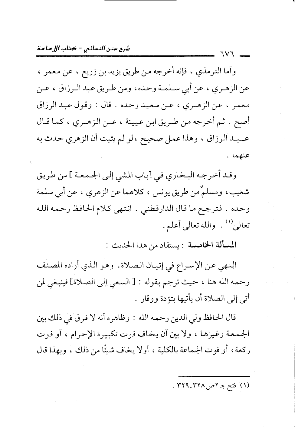 وقد أخرجه البخاري في [باب المشي إلى الجمعة] من طريق شعيب، ومسلمٌ من طريق يونس، كلاهما عن الزهري، عن أبي سلمة وحده. فترجح ما قال الدارقطني. انتهى كلام الحافظ رحمه الله تعالى (¬1). والله تعالى أعلم.