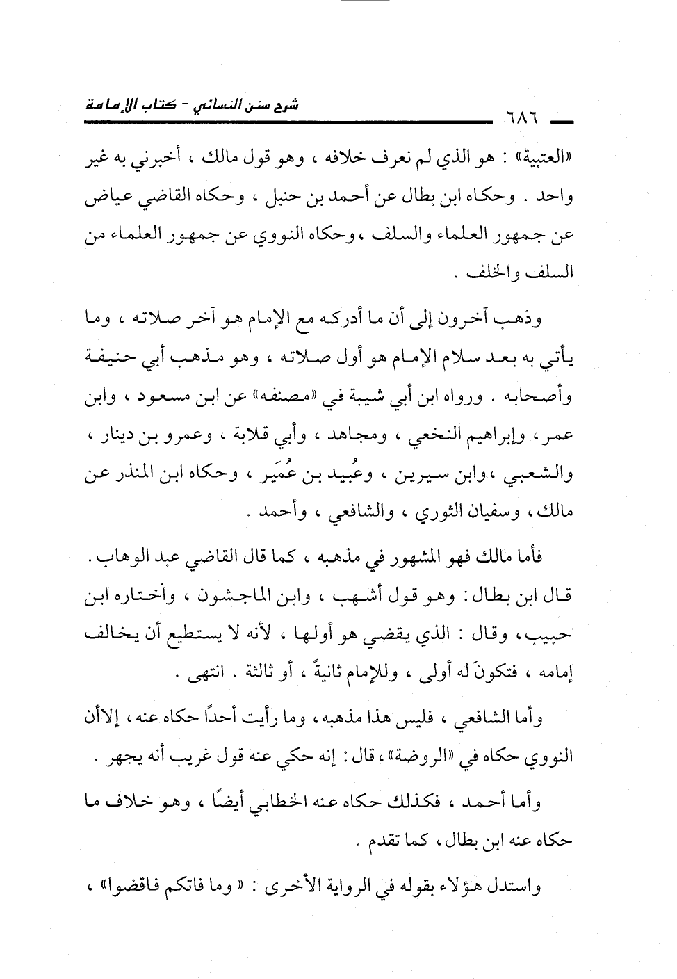 واستدل هؤلاء بقوله في الرواية الأخرى: "وما فاتكم فاقضوا"،