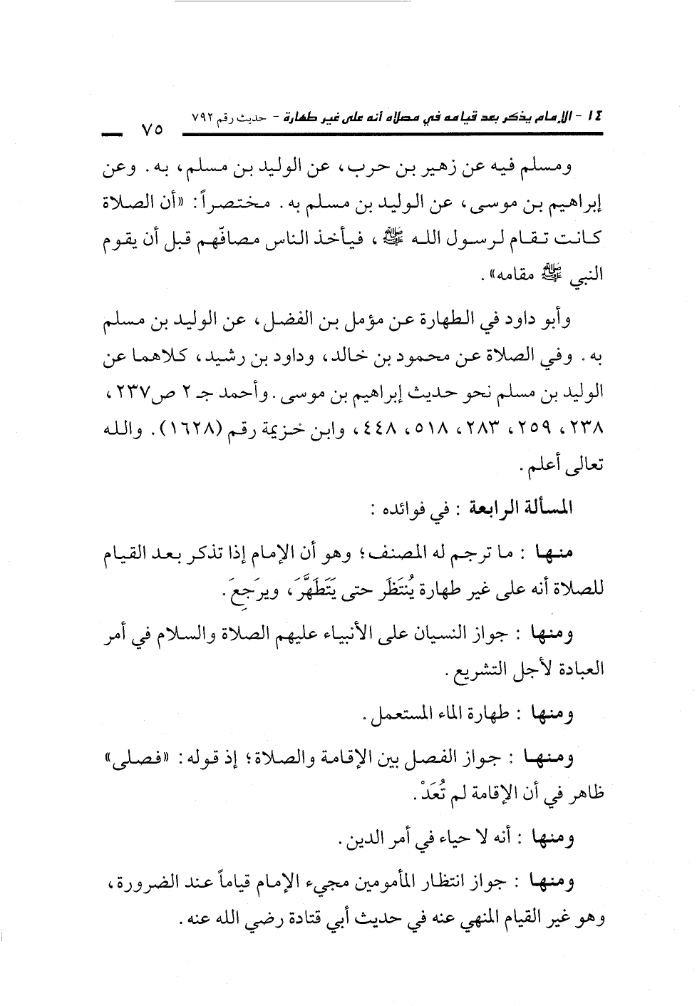 وأبو داود في الطهارة عن مؤمل بن الفضل، عن الوليد بن مسلم به. وفي الصلاة عن محمود بن خالد، وداود بن رشيد، كلاهما عن الوليد بن مسلم نحو حديث إبراهيم بن موسى. وأحمد جـ 2 ص 237، 238، 259، 283 , 518، 448، وابن خزيمة رقم (1628). والله تعالى أعلم.