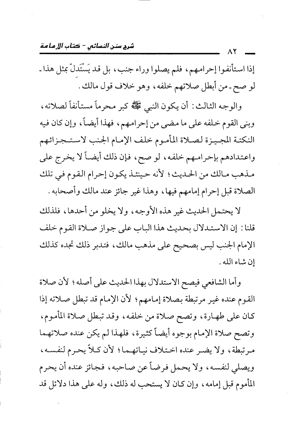 لا يحتمل الحديث غير هذه الأوجه، ولا يخلو من أحدها، فلذلك قلنا: إن الاستدلال بحديث هذا الباب على جواز صلاة القوم خلف الإمام الجنب ليس بصحيح على مذهب مالك، فتدبر ذلك تجده كذلك إن شاء الله.