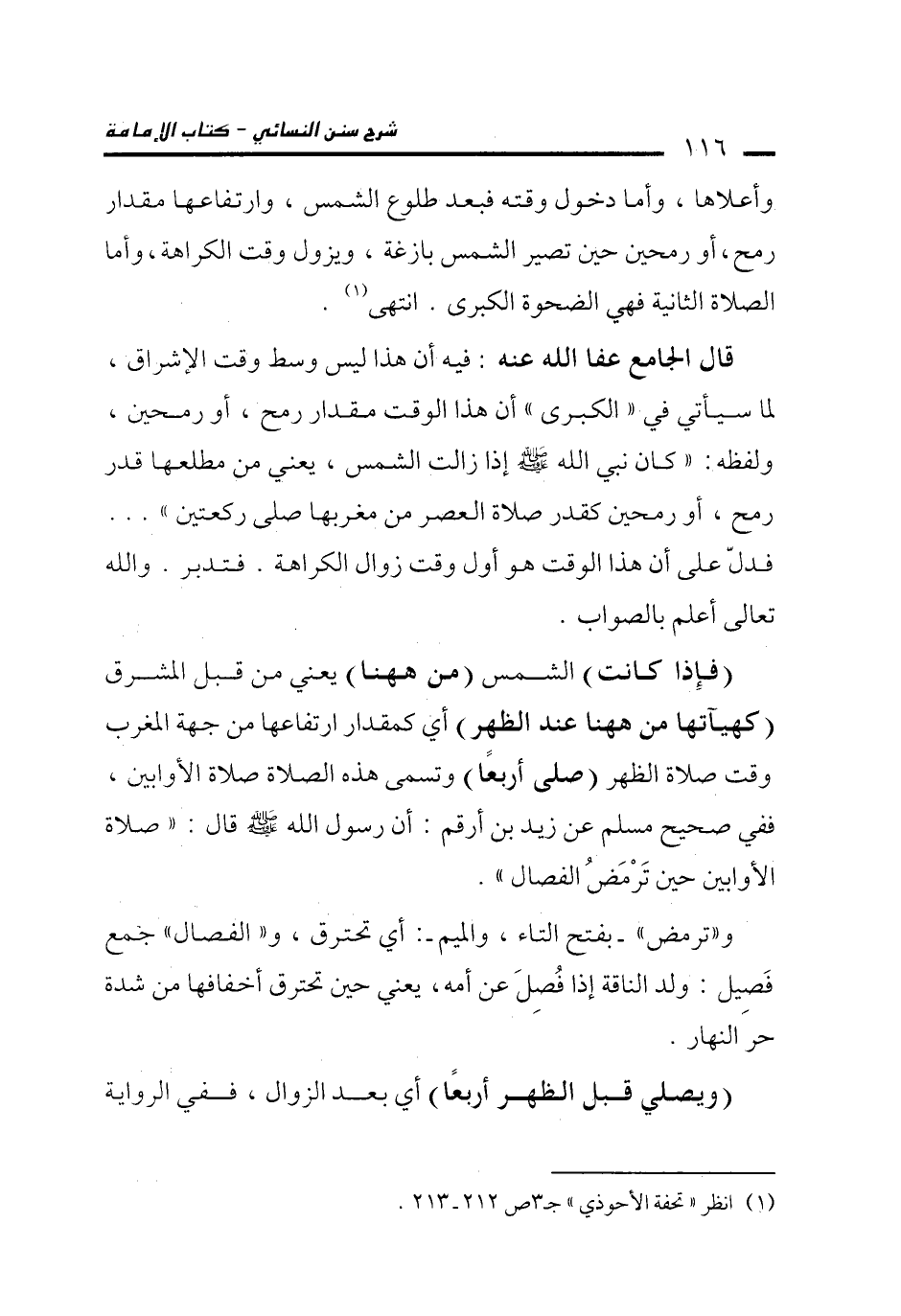 قال الجامع عفا الله عنه: فيه أن هذا ليس وسط وقت الإشراق، لما سيأتي في "الكبرى" أن هذا الوقت مقدار رمح، أو رمحين، ولفظه: "كان نبي الله -صلى الله عليه وسلم- إذا زالت الشمس، يعني من مطلعها قدر رمح، أو رمحين كقدر صلاة العصر من مغربها صلى ركعتين" ... فدلّ على أن هذا الوقت هو أول وقت زوال الكراهة. فتدبر. والله تعالى أعلم بالصواب.