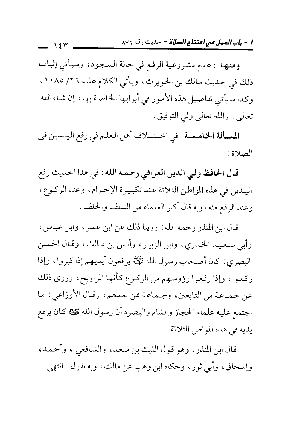 قال الحافظ ولي الدين العراقي رحمه الله: في هذا الحديث رفع اليدين في هذه المواطن الثلاثة عند تكبيرة الإحرام، وعند الركوع، وعند الرفع منه، وبه قال أكثر العلماء من السلف والخلف.