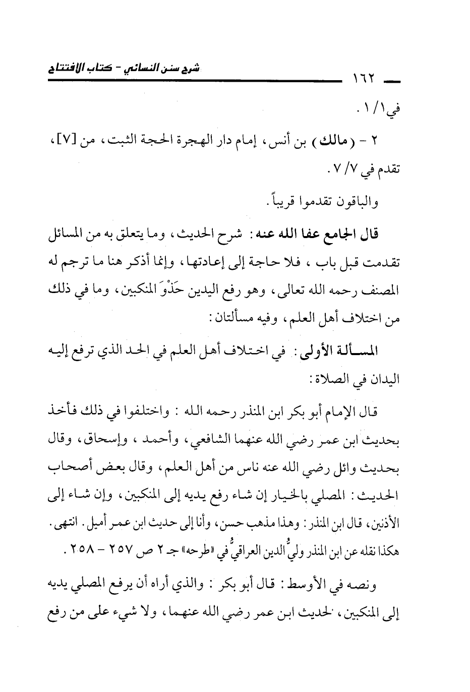 قال الإمام أبو بكر ابن المنذر رحمه الله: واختلفوا في ذلك فأخذ بحديث ابن عمر رضي الله عنهما الشافعي، وأحمد، وإسحاق، وقال بحديث وائل رضي الله عنه ناس من أهل العلم، وقال بعض أصحاب الحديث: المصلي بالخيار إن شاء رفع يديه إلى المنكبين، وإن شاء إلى الأذنين، قال ابن النذر: وهذا مذهب حسن، وأنا إلى حديث ابن عمر أميل. انتهى. هكذا نقله عن ابن المنذر وليُّ الدين العراقيُّ في "طرحه" جـ 2 ص 257 - 258.
