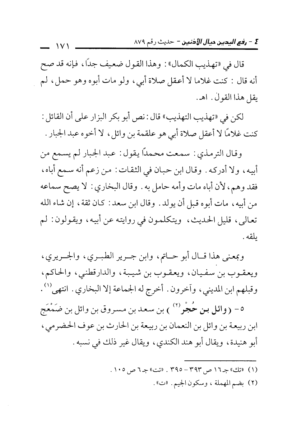 لكن في "تهذيب التهذيب" قال: نص أبو بكر البزار على أن القائل: كنت غلامًا لا أعقل صلاة أبي هو علقمة بن وائل، لا أخوه عبد الجبار.