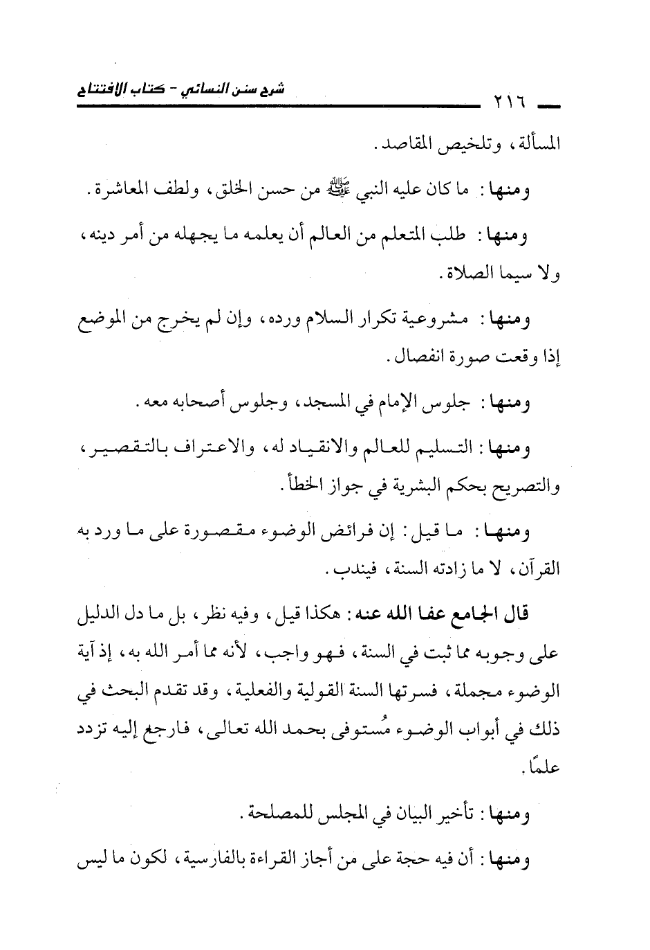 ومنها: جلوس الإمام في المسجد، وجلوس أصحابه معه.