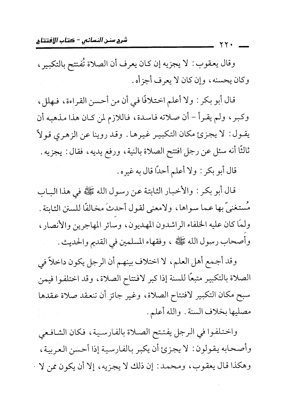 واختلفوا في الرجل يفتتح الصلاة بالفارسية، فكان الشافعي وأصحابه يقولون: لا يجزىء أن يكبر بالفارسية إذا أحسن العربية، وهكذا قال يعقوب، ومحمد: إن ذلك لا يجزيه، إلا أن يكون ممن لا