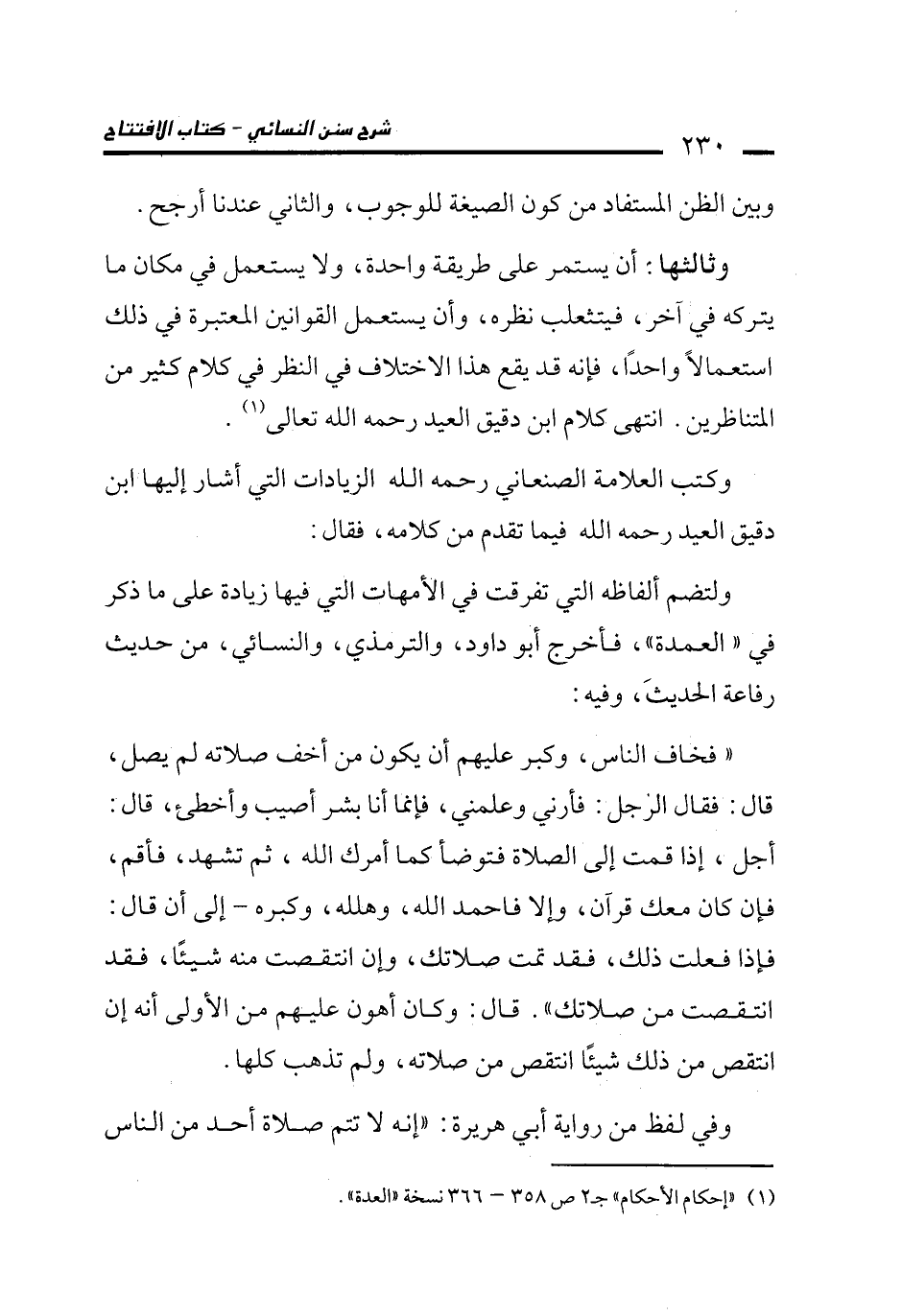 ولتضم ألفاظه التي تفرقت في الأمهات التي فيها زيادة على ما ذكر في "العمدة"، فأخرج أبو داود، والترمذي، والنسائي، من حديث رفاعة الحديثَ، وفيه: