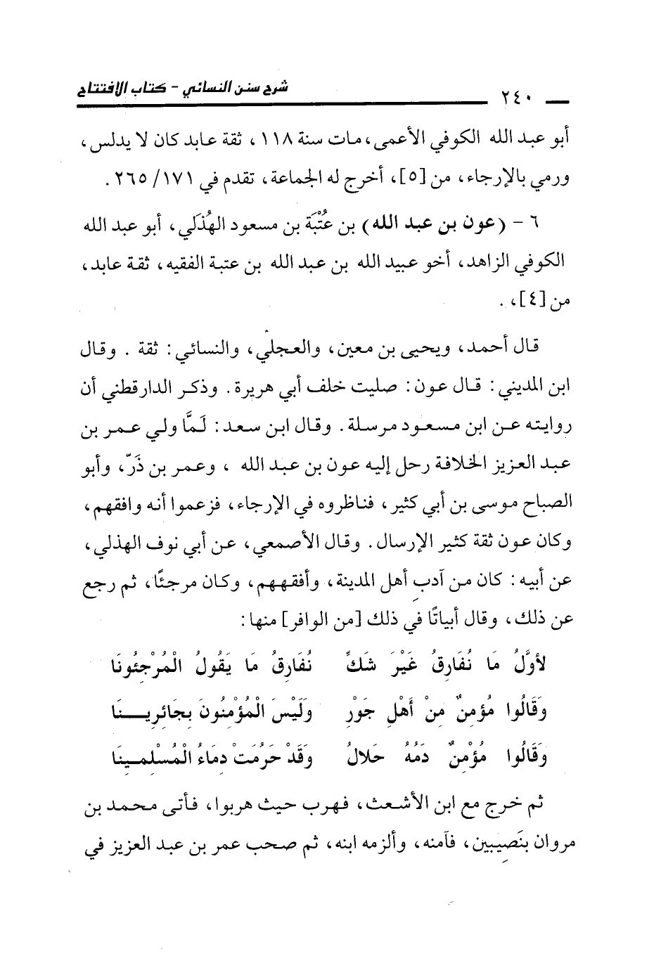6 - (عون بن عبد الله) بن عُتْبَة بن مسعود الهُذَلي، أبو عبد الله الكوفي الزاهد، أخو عبيد الله بن عبد الله بن عتبة الفقيه، ثقة عابد، من [4].