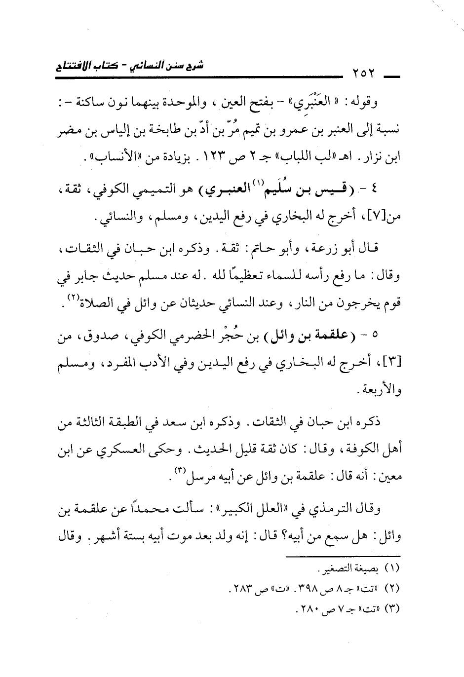 4 - (قيس بن سُلَيم (¬1) العنبري) هو التميمي الكوفي، ثقة، من [7]، أخرج له البخاري في رفع اليدين، ومسلم، والنسائي.