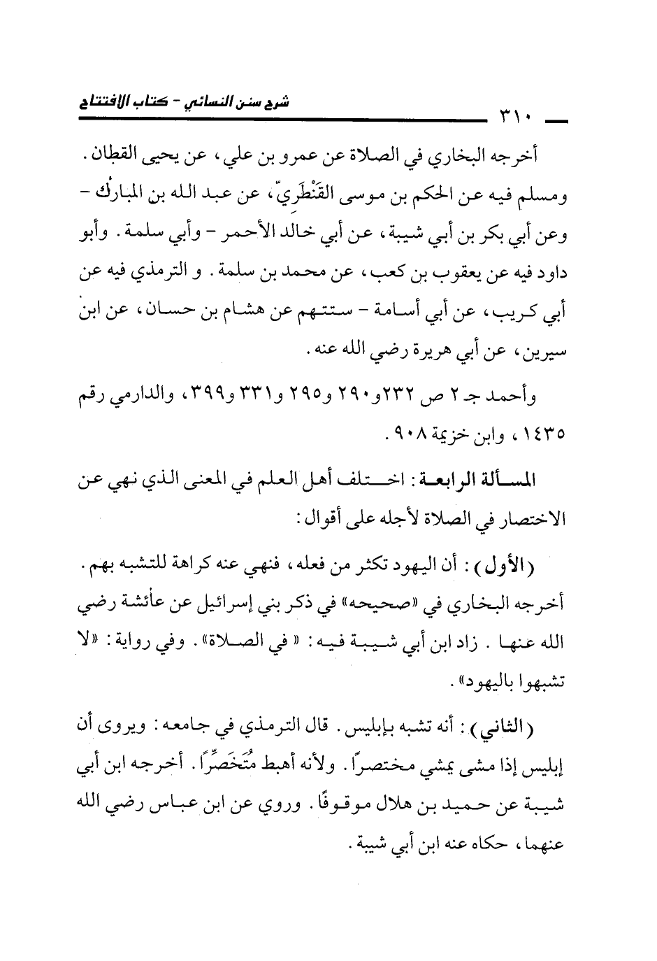 المسألة الرابعة: اختلف أهل العلم في المعنى الذي نهي عن الاختصار في الصلاة لأجله على أقوال: