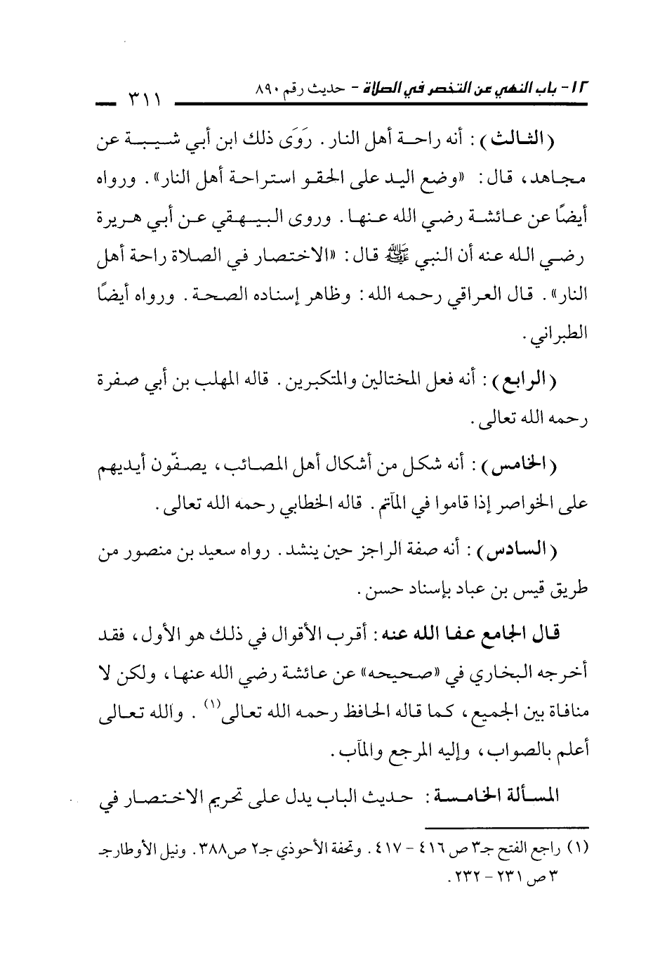 (¬1) راجع الفتح جـ 3 ص 416 - 417. وتحفة الأحوذي جـ 2 ص 388. ونيل الأوطار جـ 3 ص 231 - 232.