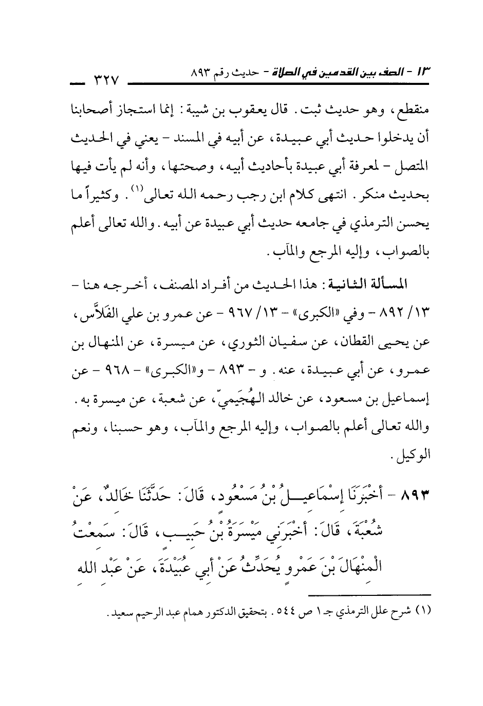 (¬1) شرح علل الترمذي جـ 1 ص 544. بتحقيق الدكتور همام عبد الرحيم سعيد.