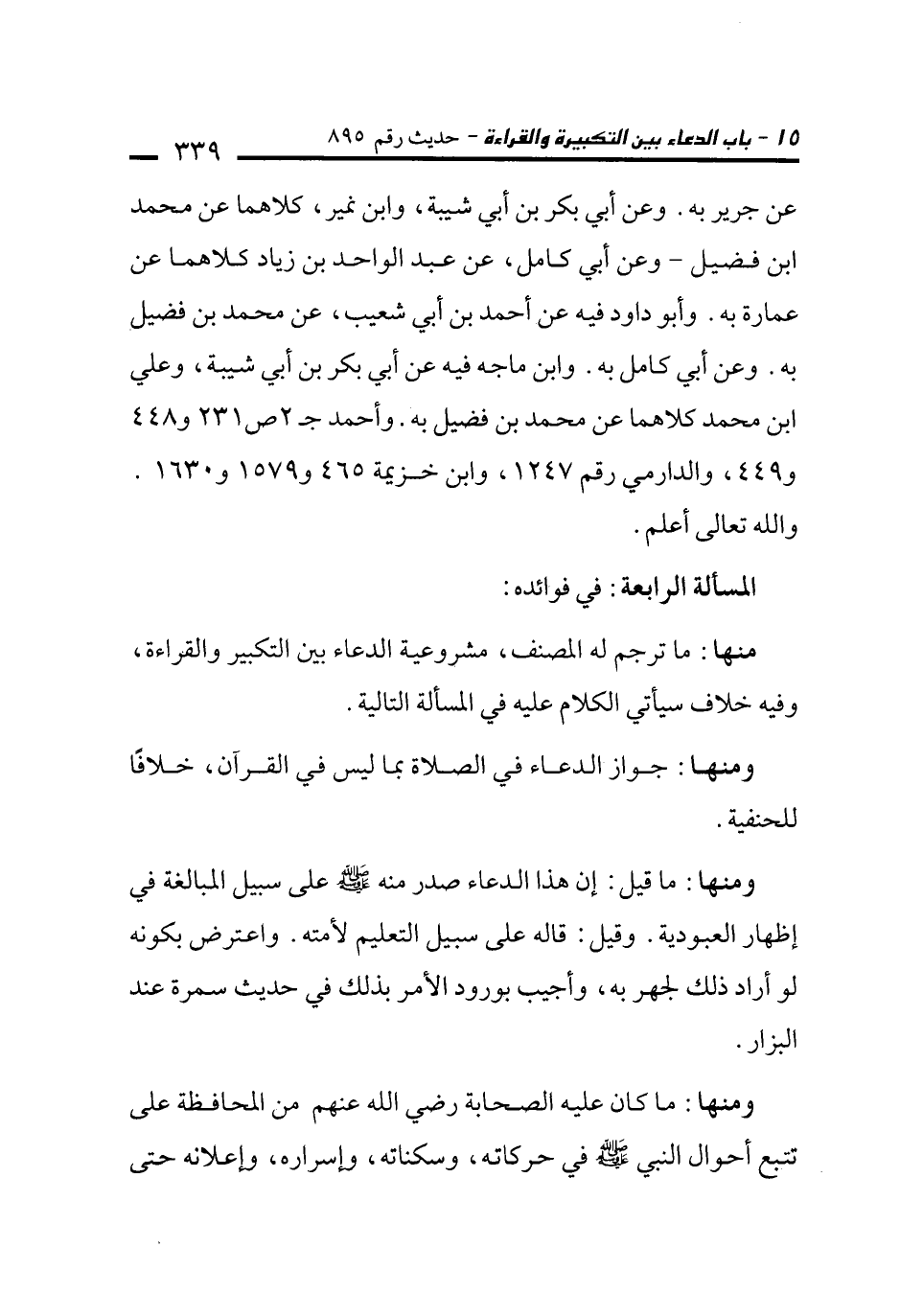 عن جرير به. وعن أبي بكر بن أبي شيبة، وابن نمير، كلاهما عن محمد ابن فضيل - وعن أبي كامل، عن عبد الواحد بن زياد كلاهما عن عمارة به. وأبو داود فيه عن أحمد بن أبي شعيب، عن محمد بن فضيل به. وعن أبي كامل به. وابن ماجه فيه عن أبي بكر بن أبي شيبة، وعلي ابن محمد كلاهما عن محمد بن فضيل به. وأحمد جـ 2 ص 231 و 448 و 449، والدارمي رقم 1247، وابن خ زيمة 465 و 1579 و 1630.والله تعالى أعلم.