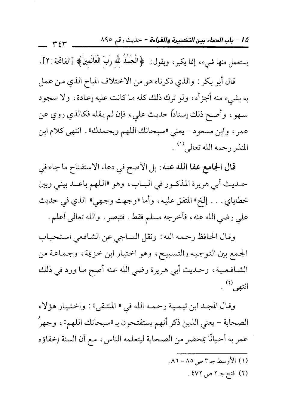 وقال المجد ابن تيمية رحمه الله في "المنتقى": واختيار هؤلاء الصحابة- يعني الذين ذكر أنهم يستفتحون بـ "سبحانك اللهم"، وجهرُ