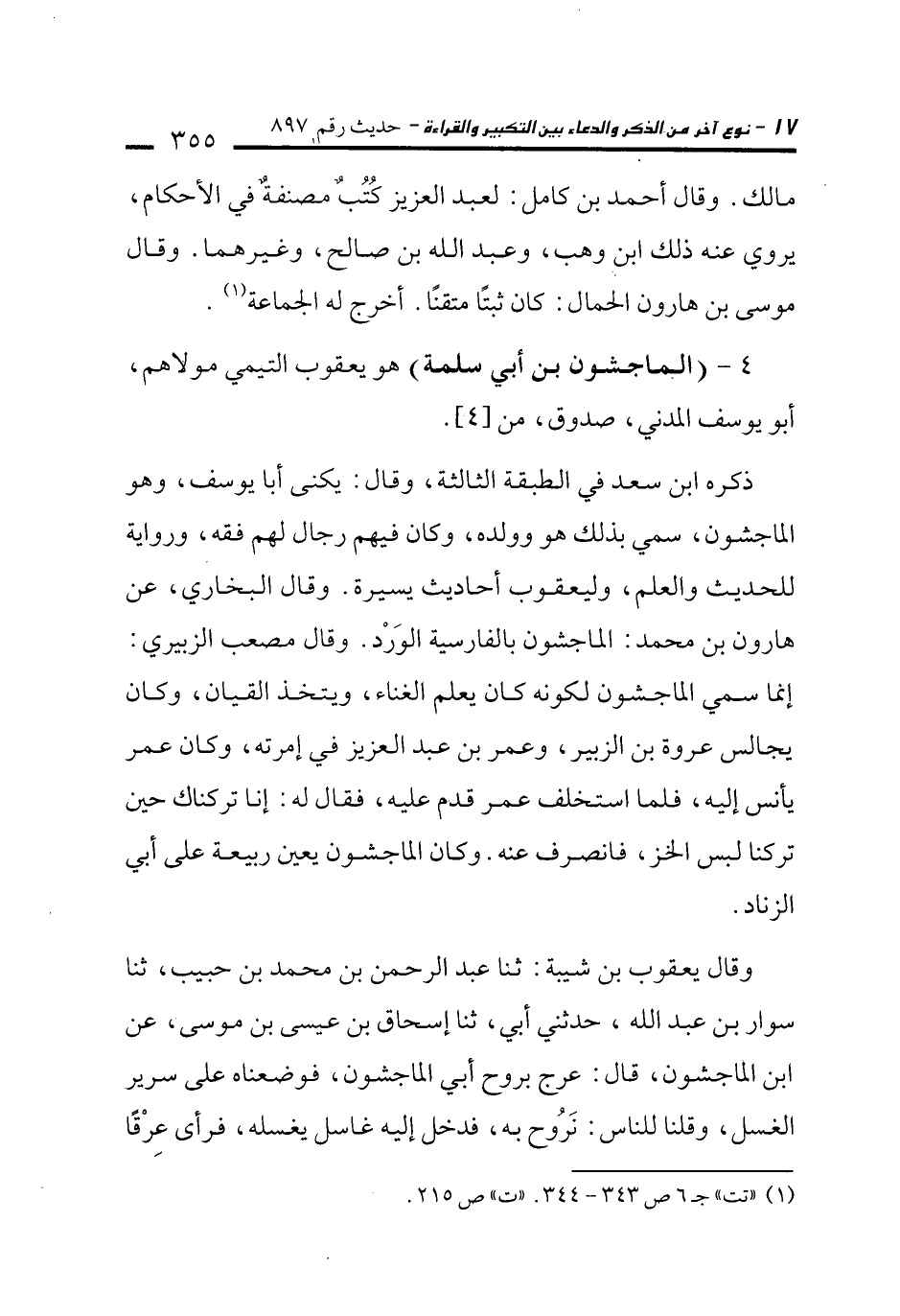 4 - (الماجشون بن أبي سلمة) هو يعقوب التيمي مولاهم، أبو يوسف المدني، صدوق، من [4].
