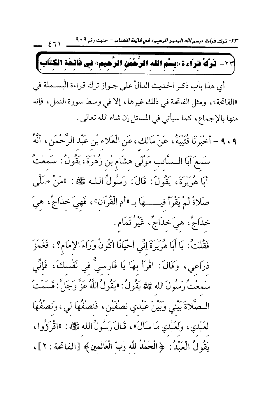 23 - تَرْكُ قِرَاءة "بِسْمِ اللَّهِ الرَّحْمَنِ الرَّحِيمِ" فِي فَاتِحَةِ الكتَابِ