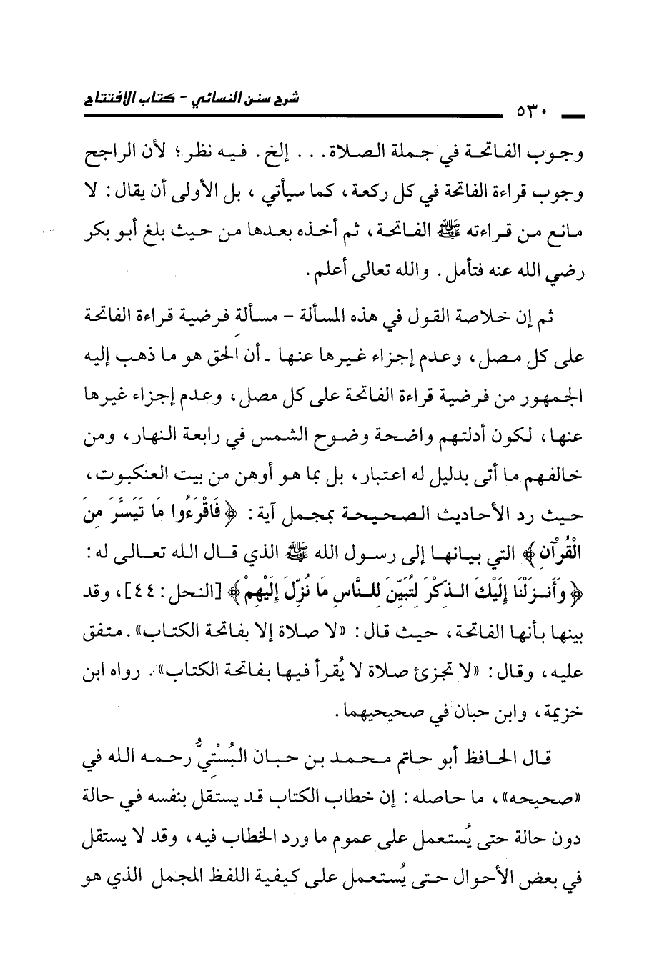 قال الحافظ أبو حاتم محمد بن حبان البُسْتِيُّ رحمه الله في "صحيحه"، ما حاصله: إن خطاب الكتاب قد يستقل بنفسه في حالة