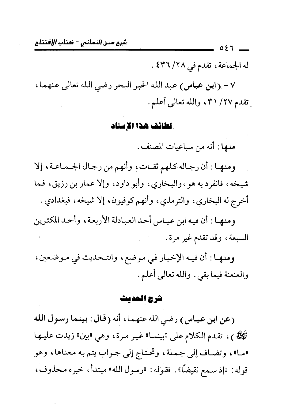 ومنها: أن فيه ابن عباس أحد العبادلة الأربعة، وأحد المكثرين السبعة، وقد تقدم غير مرة.