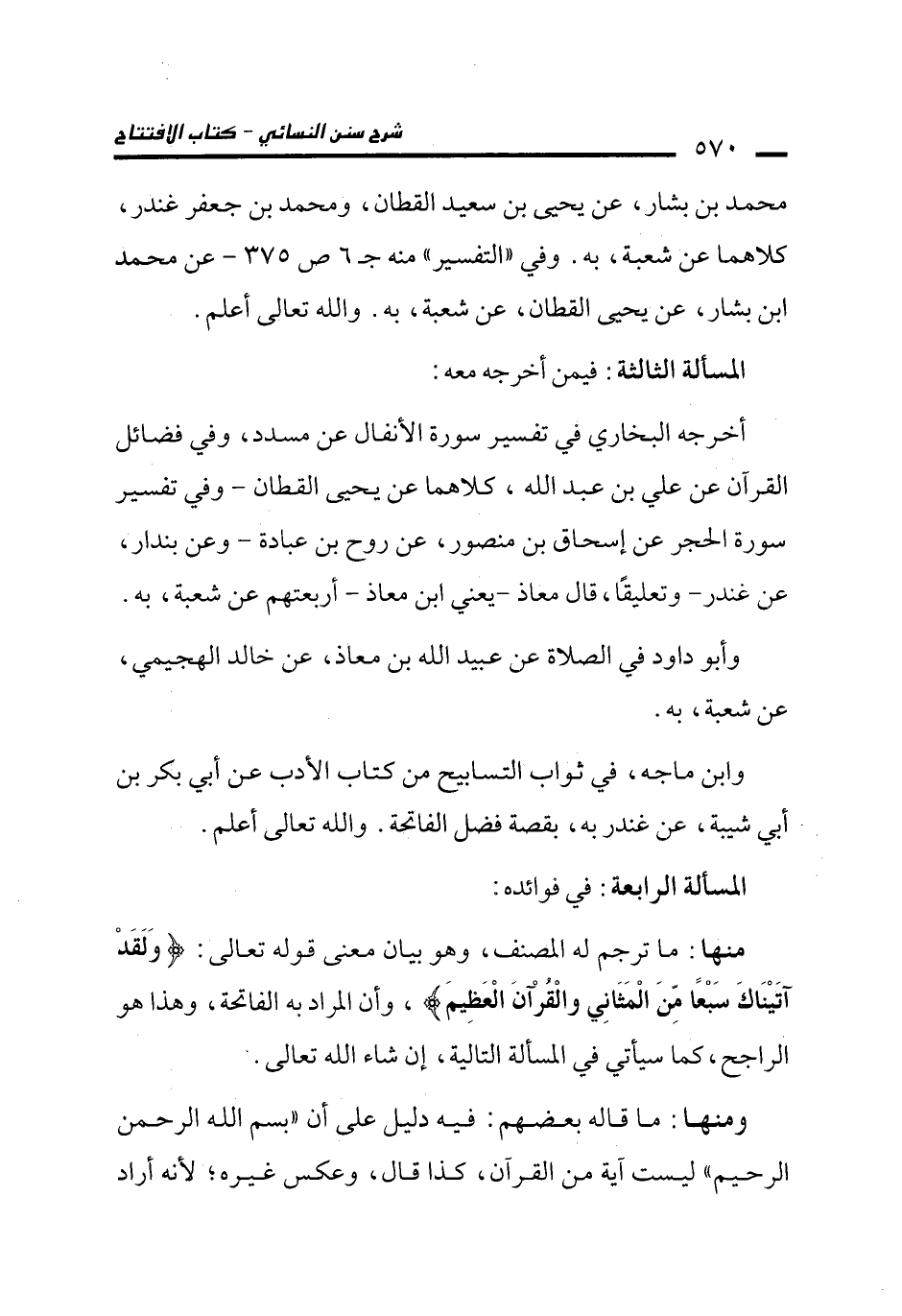 وابن ماجه، في ثواب التسابيح من كتاب الأدب عن أبي بكر بن أبي شيبة، عن غندر به، بقصة فضل الفاتحة. والله تعالى أعلم.