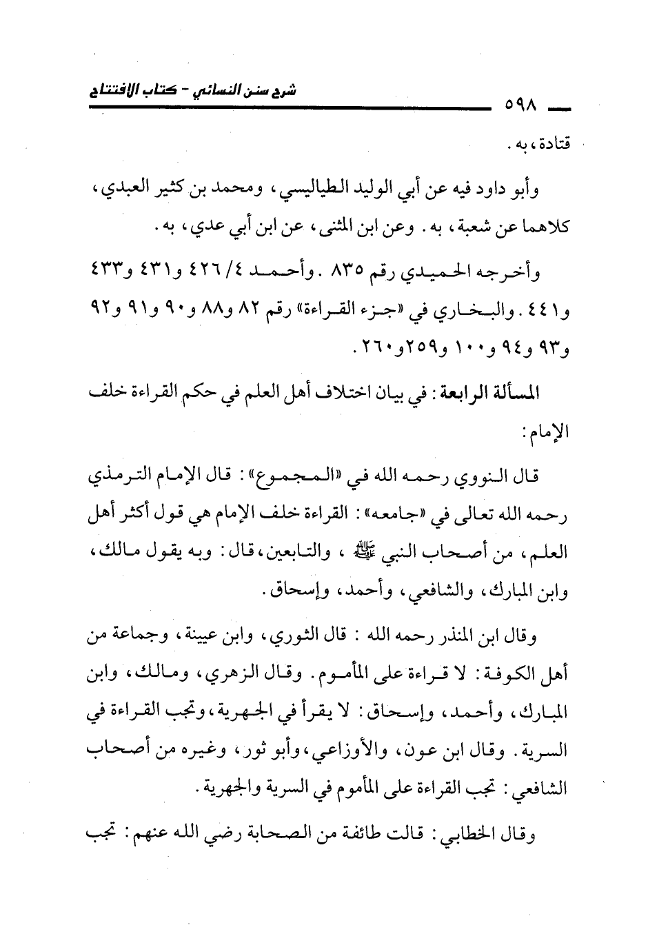 المسألة الرابعة: في بيان اختلاف أهل العلم في حكم القراءة خلف الإمام:
