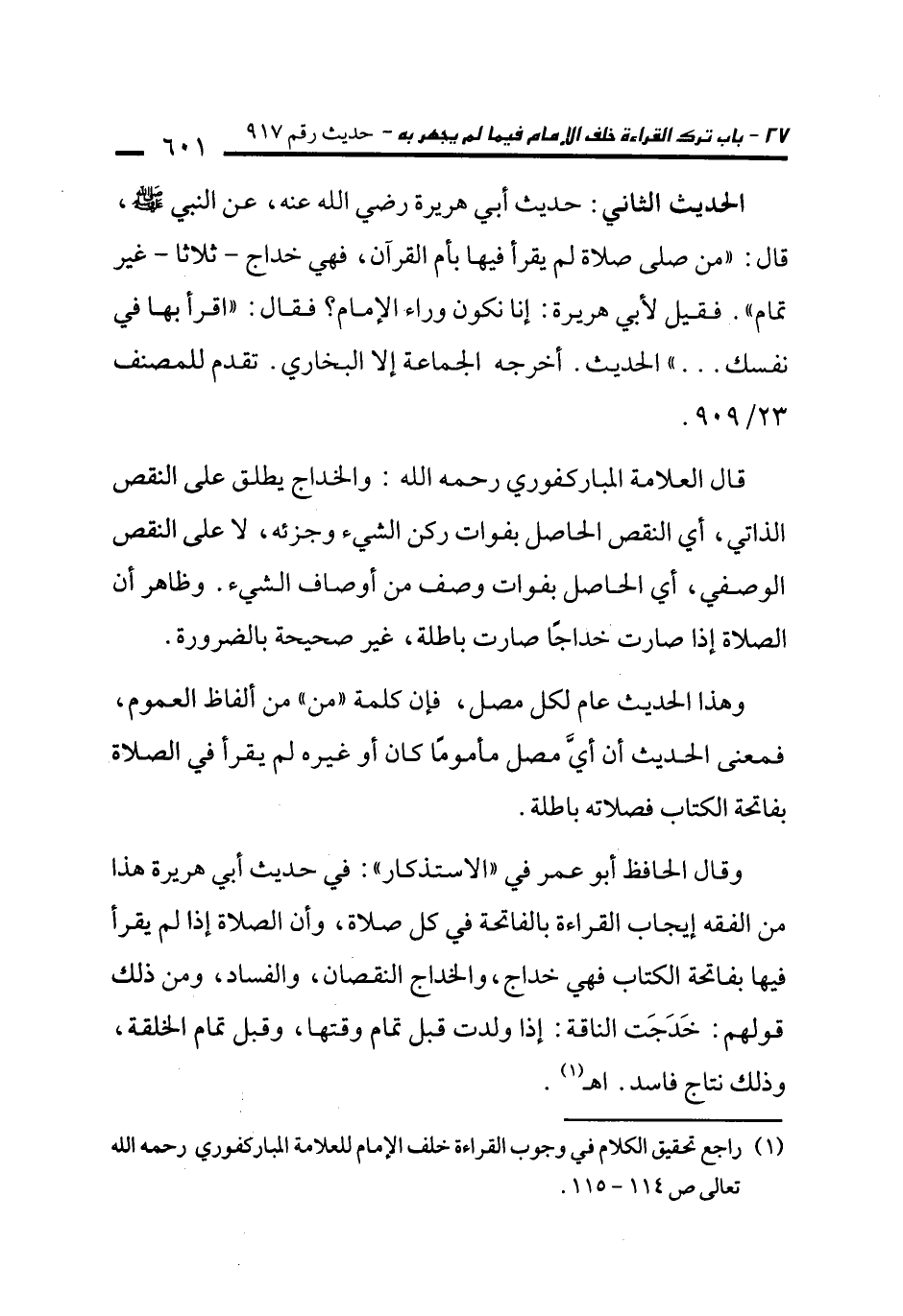 (¬1) راجع تحقيق الكلام في وجوب القراءة خلف الإمام للعلامة المباركفوري رحمه الله تعالى ص 114 - 115.
