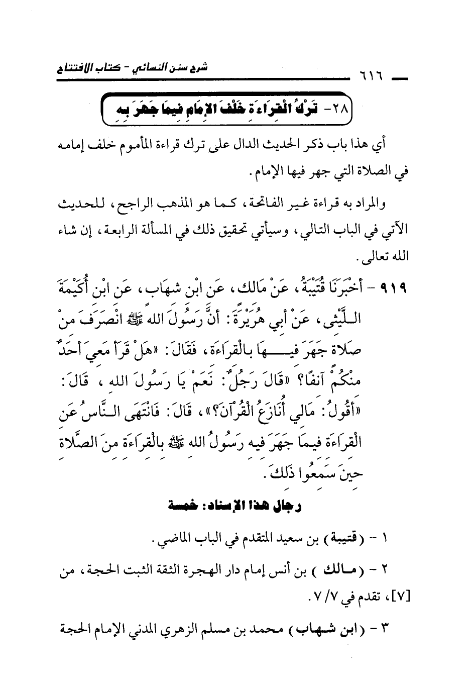 28 - تَرْكِ الْقِرَاءَةِ خَلْفَ الإِمَامِ فِيمَا جَهَرَ بِهِ