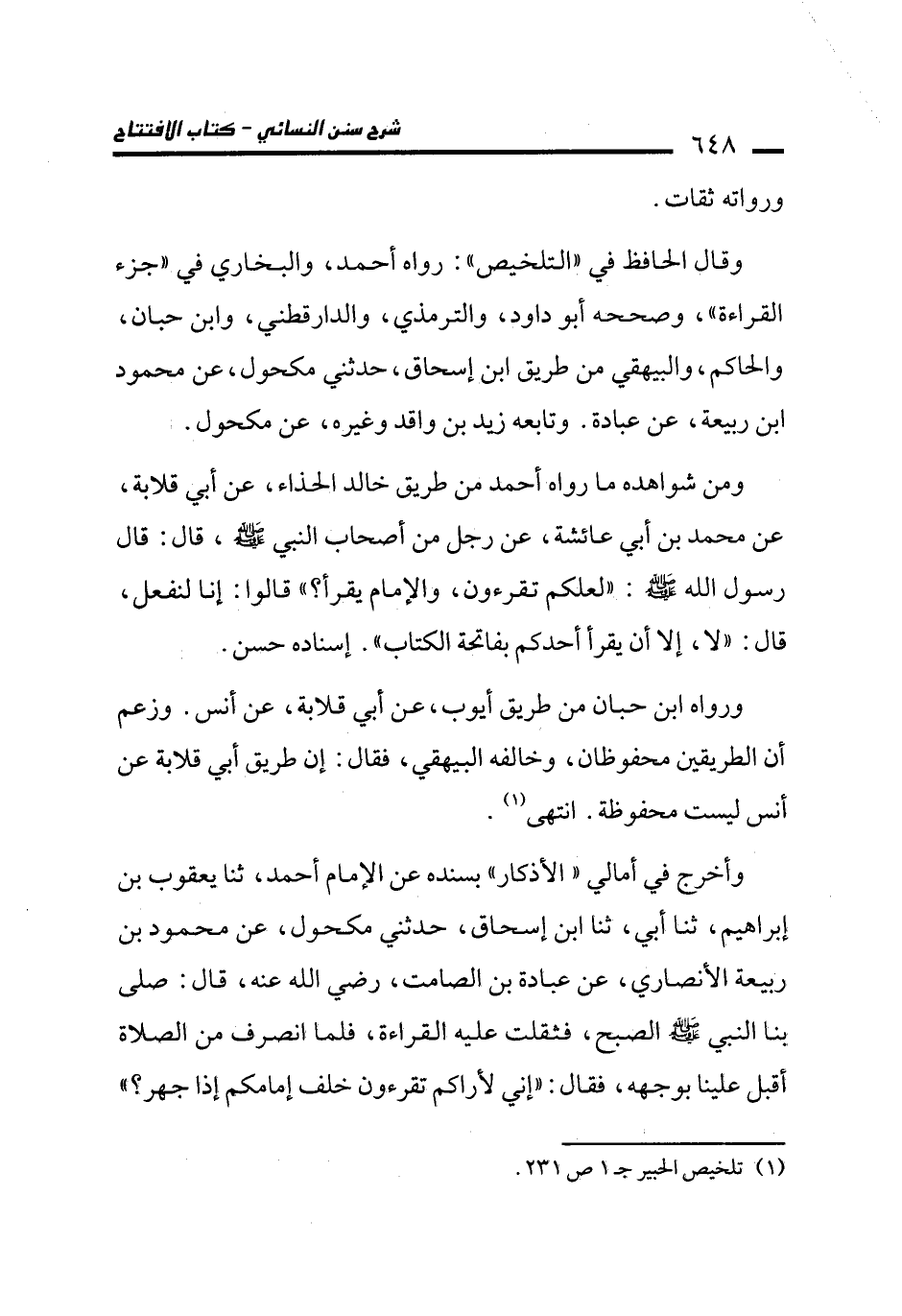 (¬1) تلخيص الحبير جـ 1 ص 231.