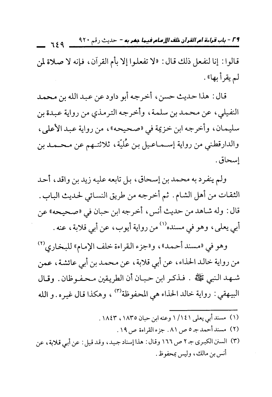 (¬2) مسند أحمد جـ 5 ص 81. جزء القراءة ص 19.