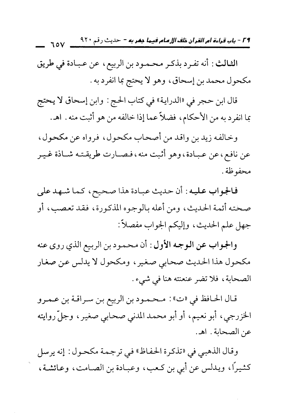 والجواب عن الوجه الأول: أن محمود بن الربيع الذي روى عنه مكحول هذا الحديث صحابي صغير، ومكحول لا يدلس عن صغار