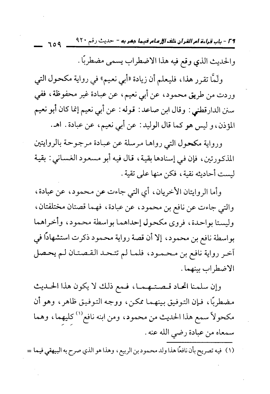 ولَمَّا تقرر هذا، فليعلم أن زيادة "أبي نعيم" في رواية مكحول التي وردت من طريق محمود، عن أبي نعيم، عن عبادة غير محفوظة، ففي سنن الدارقطني: وقال ابن صاعد: قوله: عن أبي نعيم إنما كان أبو نعيم المؤذن، وليس هو كما قال الوليد: عن أبي نعيم، عن عبادة. اهـ.