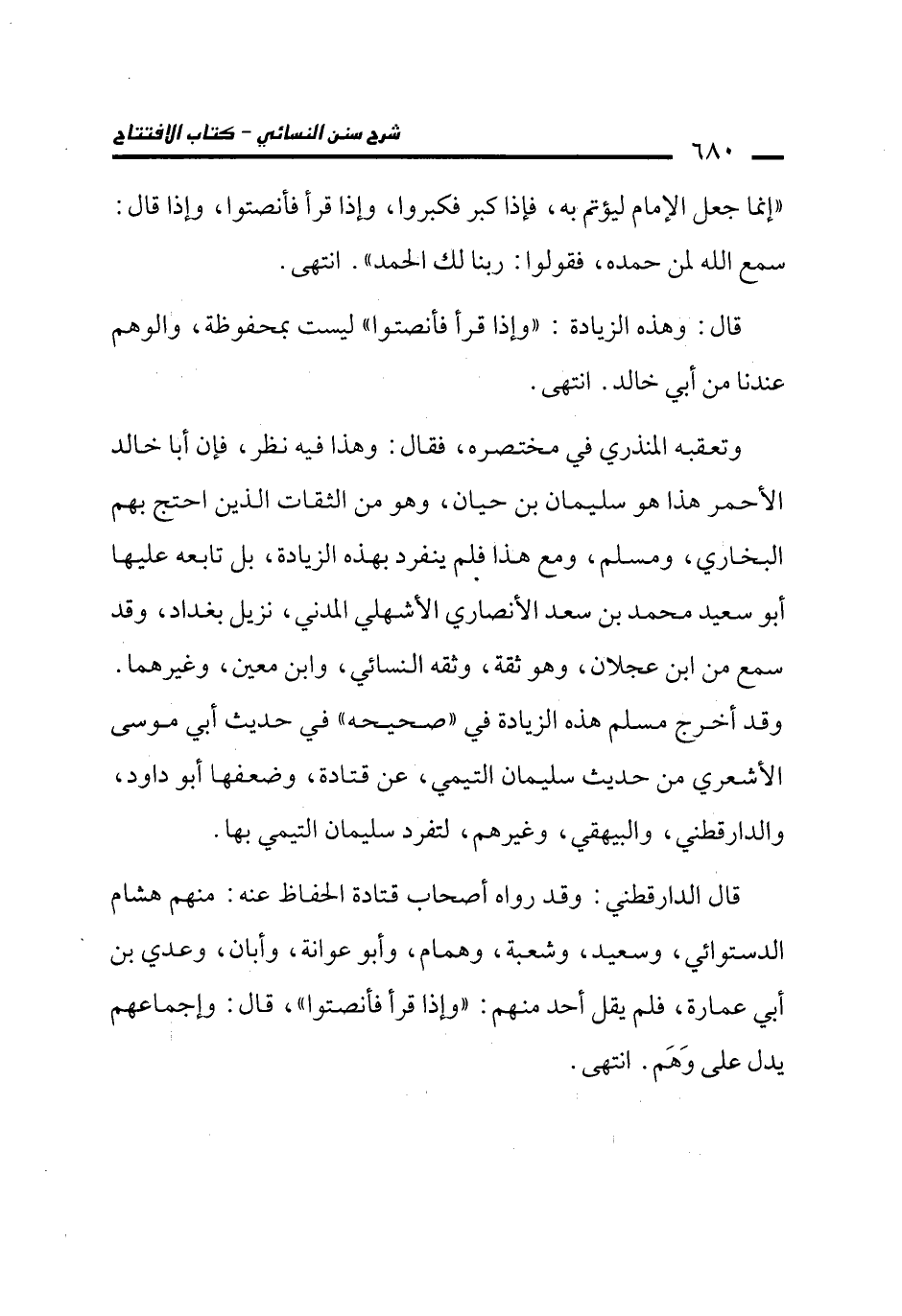 قال: وهذه الزيادة: "وإذا قرأ فأنصتوا" ليست بمحفوظة، والوهم عندنا من أبي خالد. انتهى.