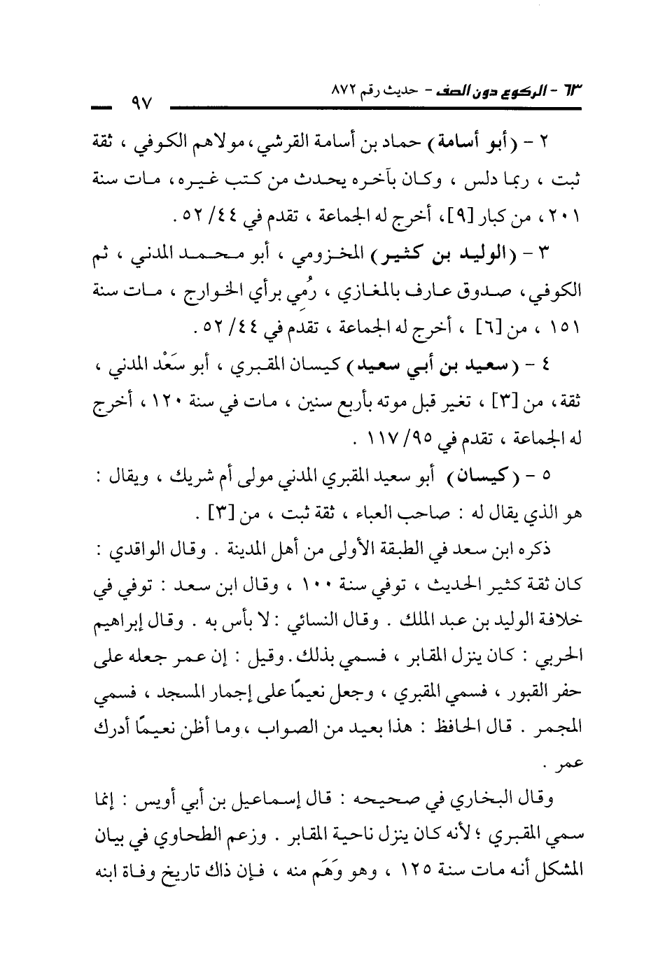 5 - (كيسان) أبو سعيد المقبري المدني مولى أم شريك، ويقال: هو الذي يقال له: صاحب العباء، ثقة ثبت، من [3].
